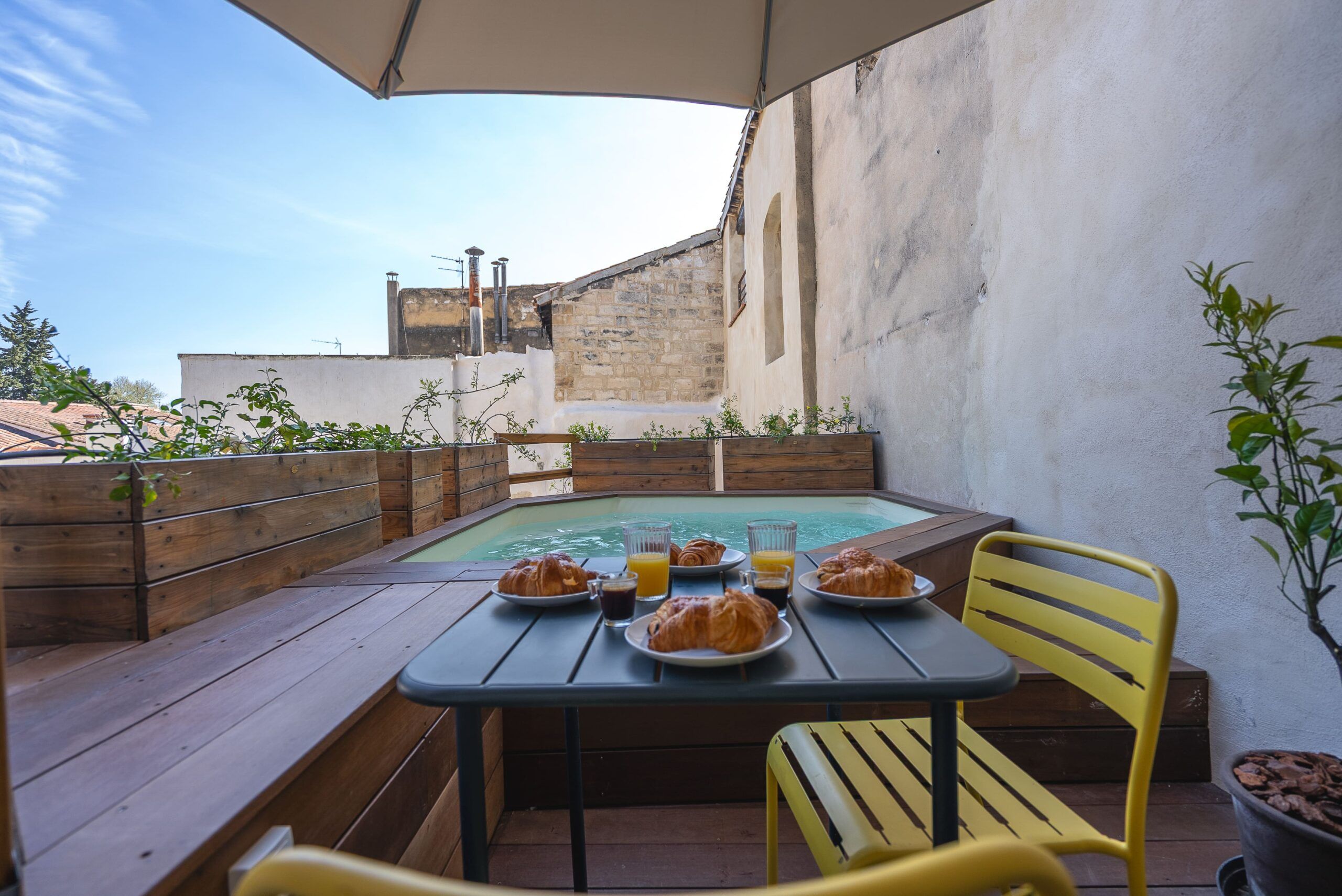 Un petit coin de paradis perché au-dessus des toits d’Avignon. Sur cette terrasse privative, on savoure la tranquillité… et la fraîcheur d’un bassin chauffé (en service de fin mars à début novembre. Entièrement privative, cette terrasse perchée au calme offre une vue dégagée sur les toits d’Avignon.