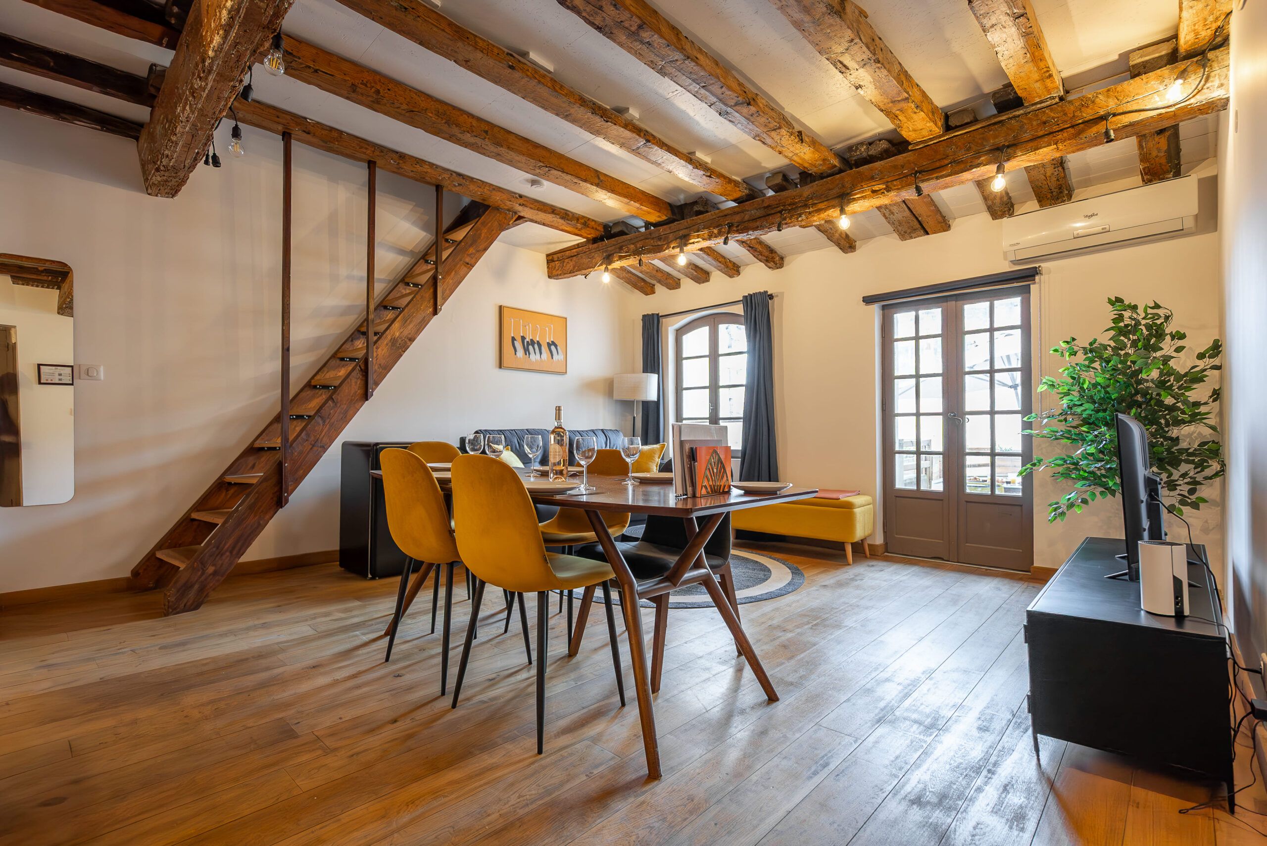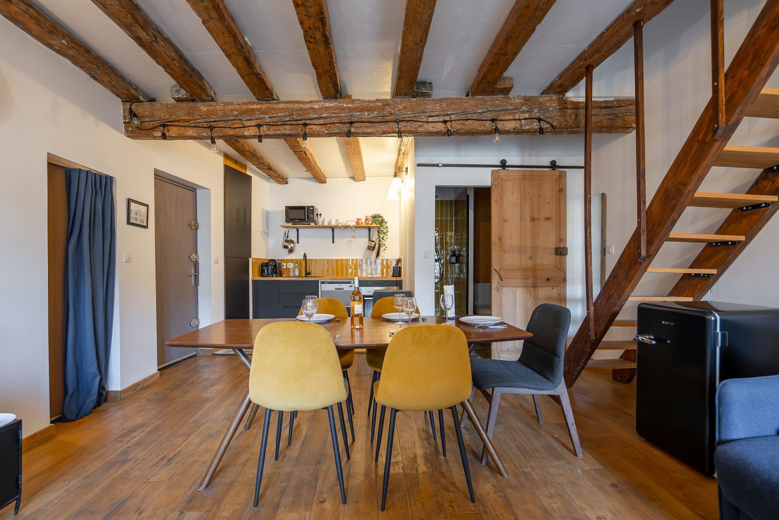 Une petite table bistro, des chaises colorées, un grand parasol, une vue dégagée… C’est le spot parfait pour un café au soleil ou un apéro à l’abri des regards. Un vrai cocon, calme et lumineux, en plein centre historique.